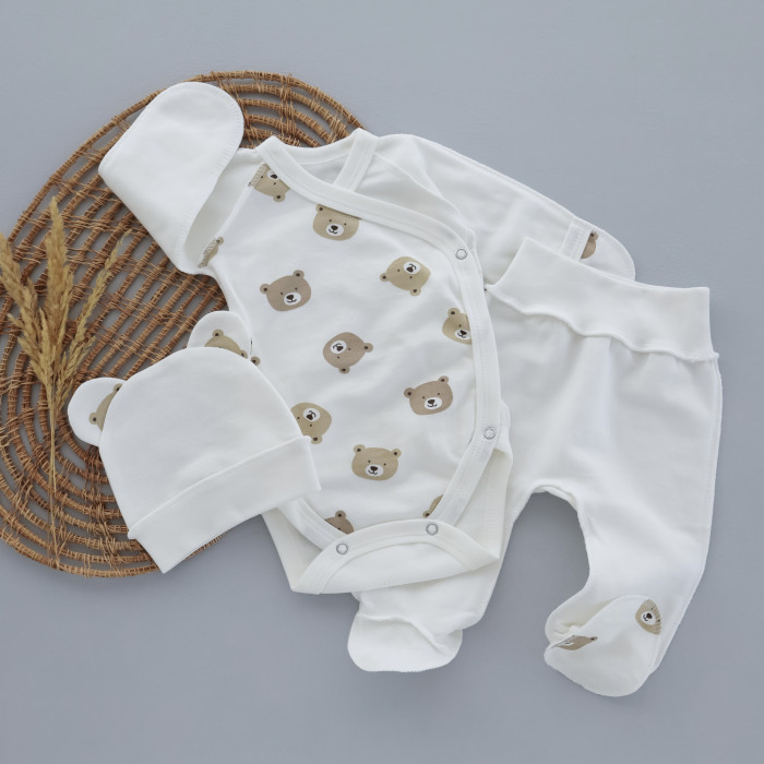 Набір 3в1: Боді, повзунки та шапочка Ведмедик Бежевий (Футер - з начосом) 56 (0-3міс)