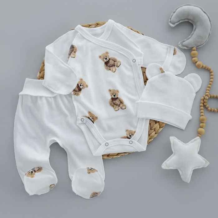 Набір 3в1: Боді, повзунки та шапочка Ведмедик Тедді (Інтерлок) 56 (0-3міс)