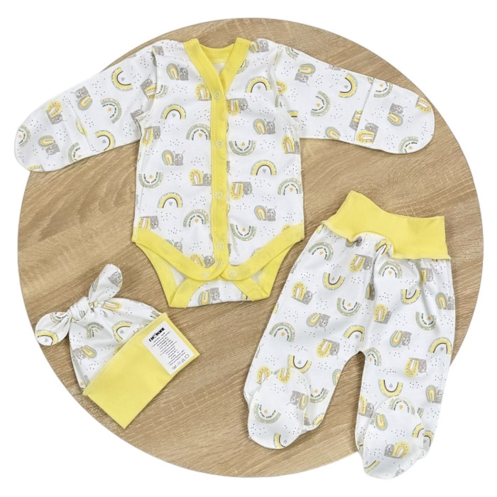 Набір 3в1: Боді, повзунки та шапочка Веселка Жовтий (Інтерлок) 56 (0-3міс)