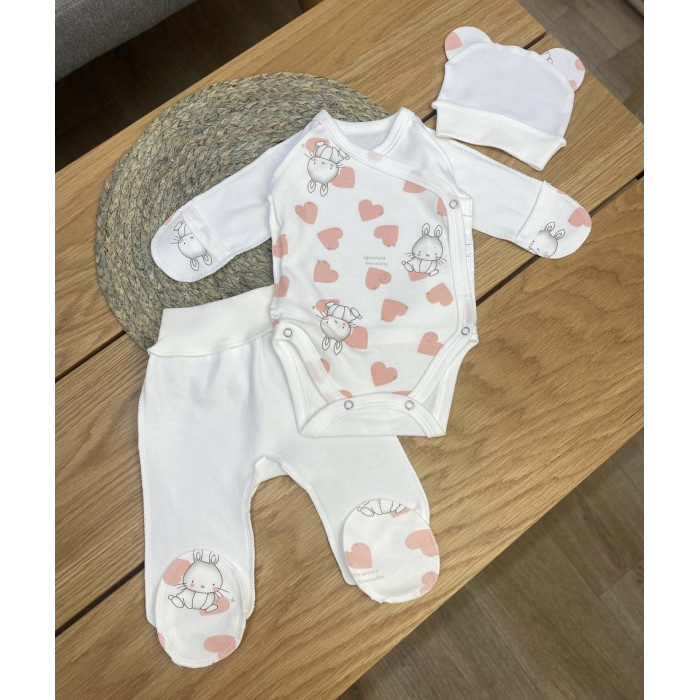Набір 3в1: Боді, повзунки та шапочка Зайка Сердечка (Інтерлок) 56 (0-3міс)