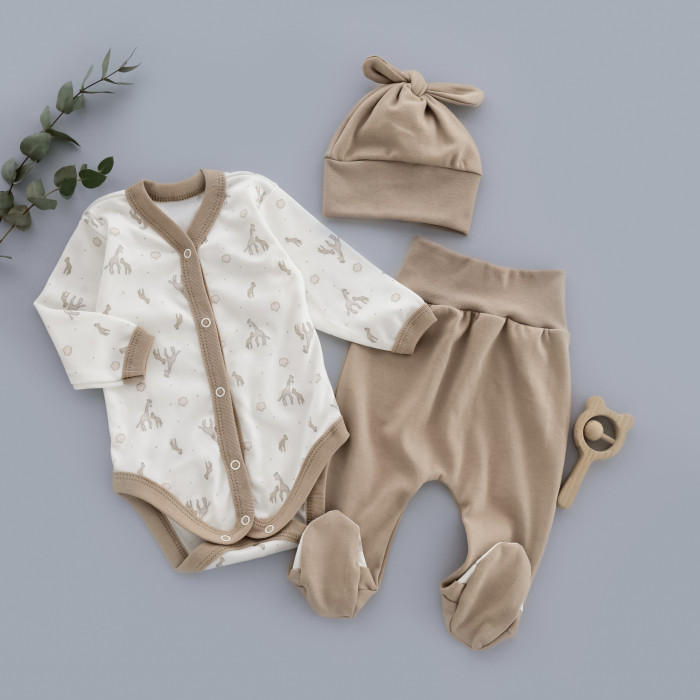 Набір 3в1: Боді, повзунки та шапочка Жирафіки Бежевий (Інтерлок) 62 (3-6міс)