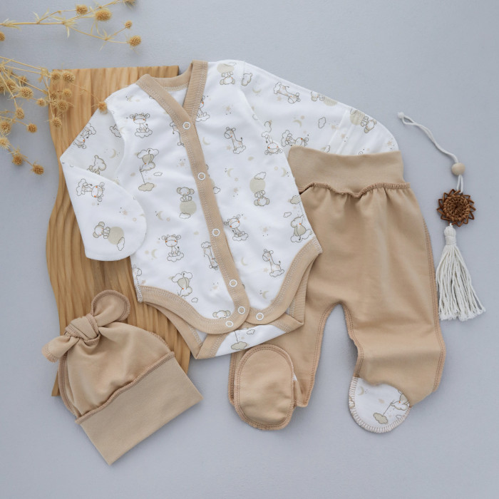 Набір 3в1: Боді, повзунки та шапочка Жирафіки (Футер - з начосом) 56 (0-3міс)