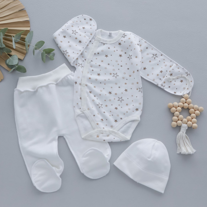 Набір 3в1: Боді, повзунки та шапочка Зірки Бежеві (Футер - з начосом) 56 (0-3міс)