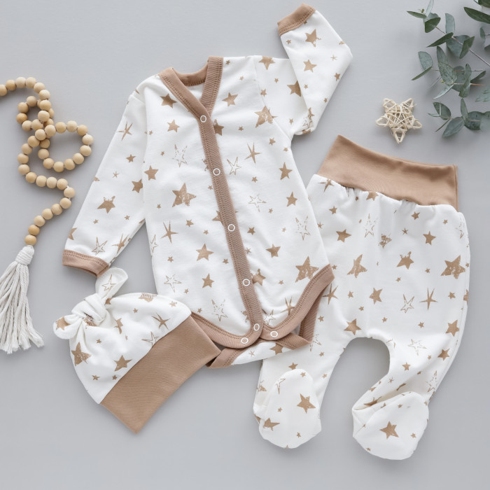 Набір 3в1: Боді, повзунки та шапочка Зірки Бежевий (Футер - з начосом) 62 (3-6міс)