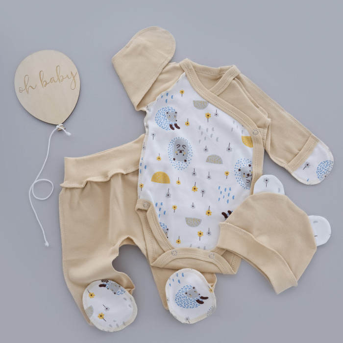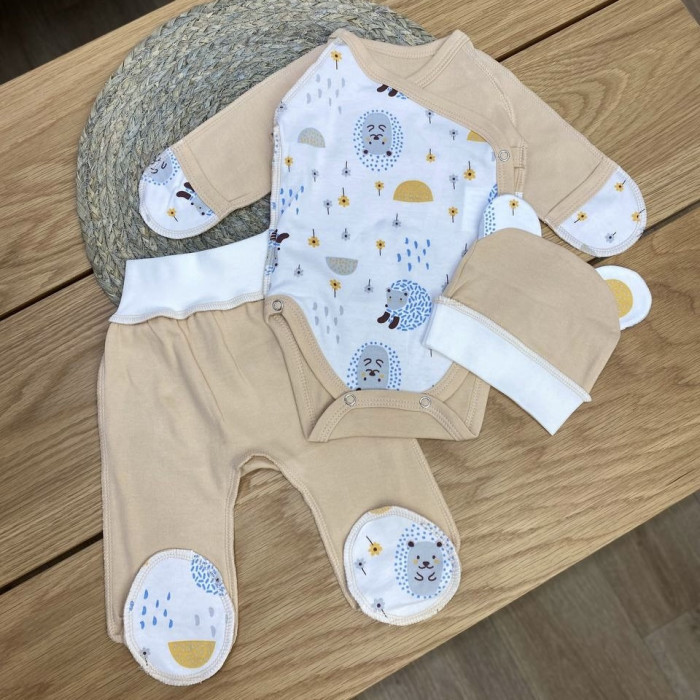Набір 3в1: Боді-розпашонка, повзунки, шапочка Їжачки Бежевий (Інтерлок) 56 (0-3міс)