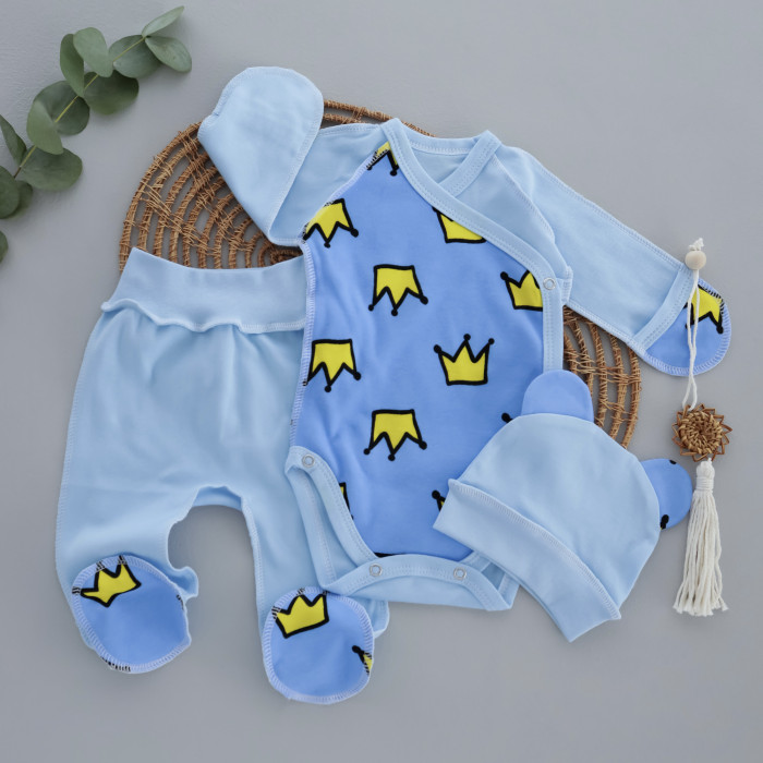 Набір 3в1: Боді-розпашонка, повзунки, шапочка Корони Синій (Інтерлок) 56 (0-3міс)