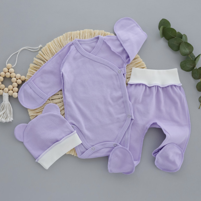 Набір 3в1: Боді-розпашонка, повзунки, шапочка Ліловий (Інтерлок) 56 (0-3міс)
