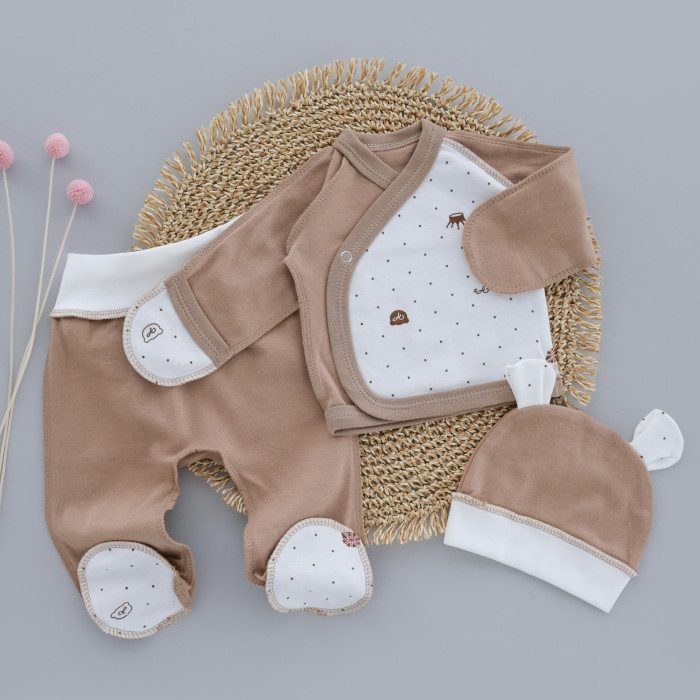 Набір 3в1: Льоля, повзунки, шапочка Бежевий з малюнком (Інтерлок) 56 (0-3міс)
