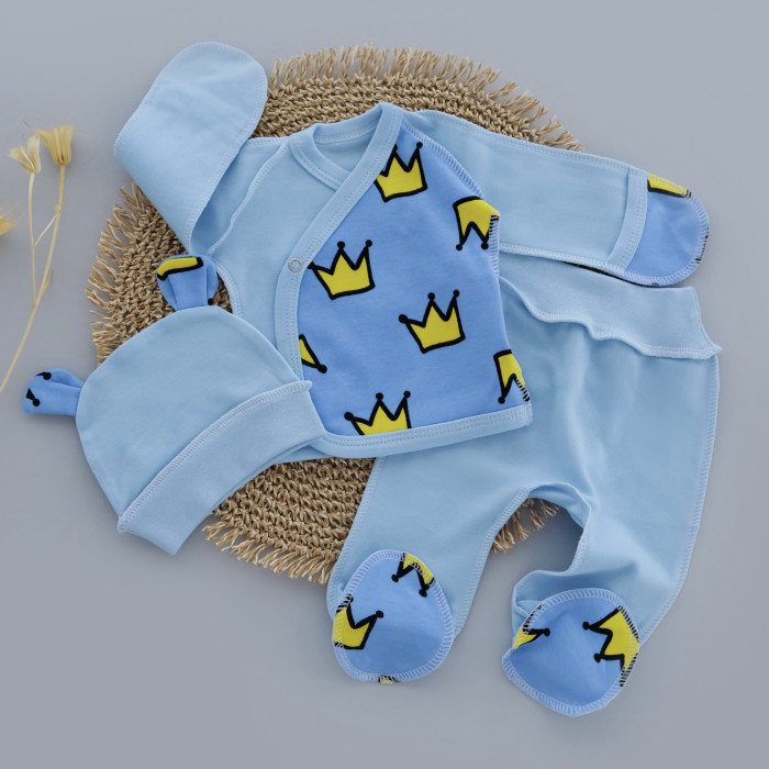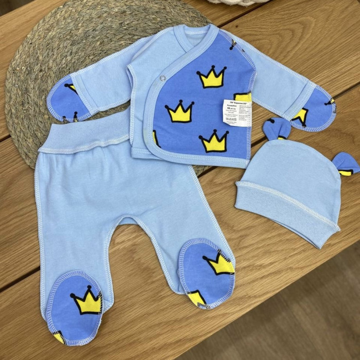 Набір 3в1: Льоля, повзунки, шапочка Корони Синій (Інтерлок) 56 (0-3міс)