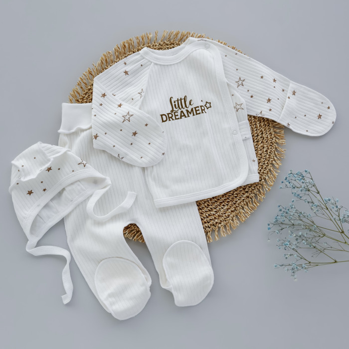 Набір 3в1: Льоля, повзунки, шапочка Зірки Little dreamer Молочний (Рубчик) 56 (0-3міс)