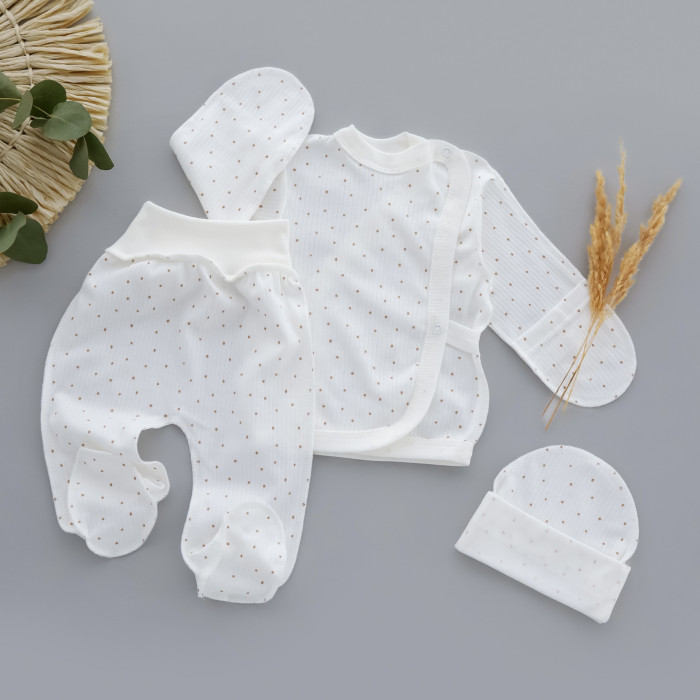 Набір 3в1: Льоля, повзунки та шапочка Горошок Бежевий (Рубчик) 56 (0-3міс)