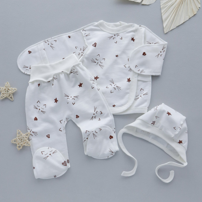Набір 3в1: Льоля, повзунки та шапочка Котики (Футер- з начосом) 56 (0-3міс)