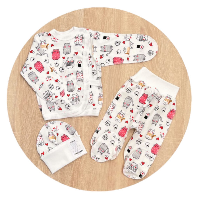 Набір 3в1: Льоля, повзунки та шапочка Котики Рожевий (Інтерлок) 56 (0-3міс)