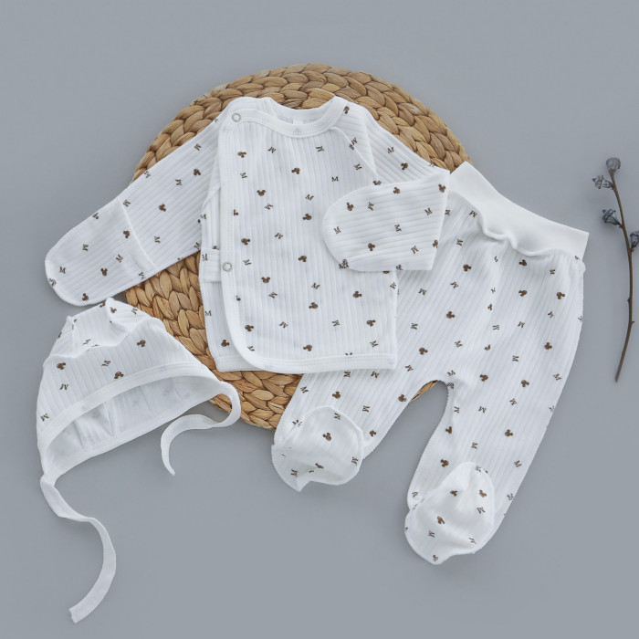 Набір 3в1: Льоля, повзунки та шапочка Міккі Молочний 56 (0-3міс)