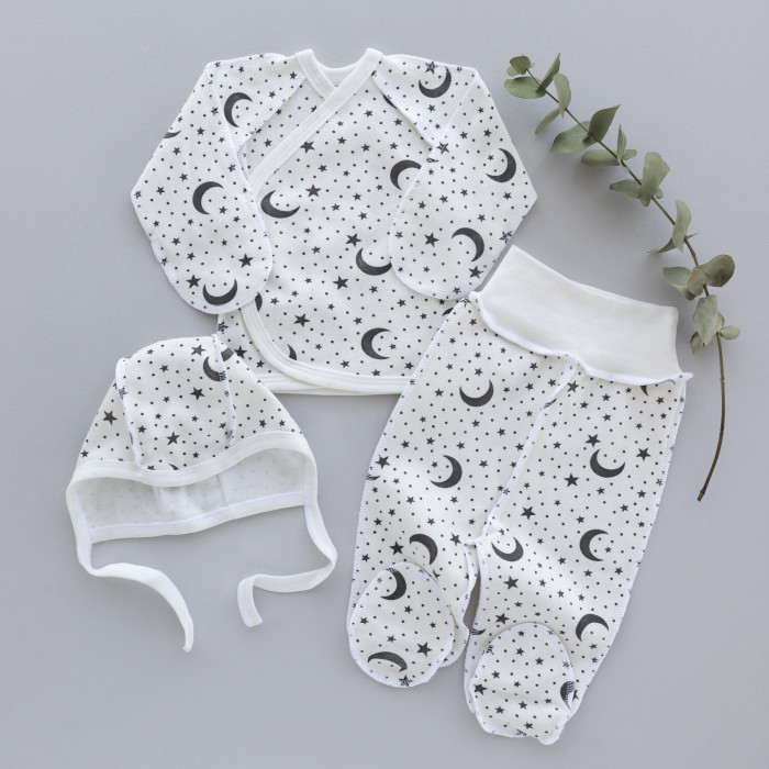 Набір 3в1: Льоля, повзунки та шапочка Місяць Білий (Інтерлок) 56 (0-3міс)