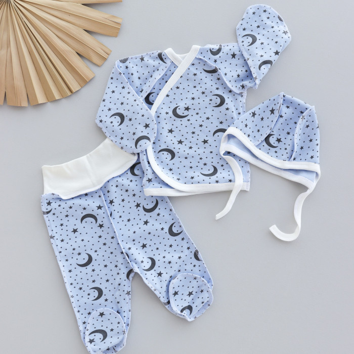 Набір 3в1: Льоля, повзунки та шапочка Місяць Блакитний (Інтерлок) 56 (0-3міс)