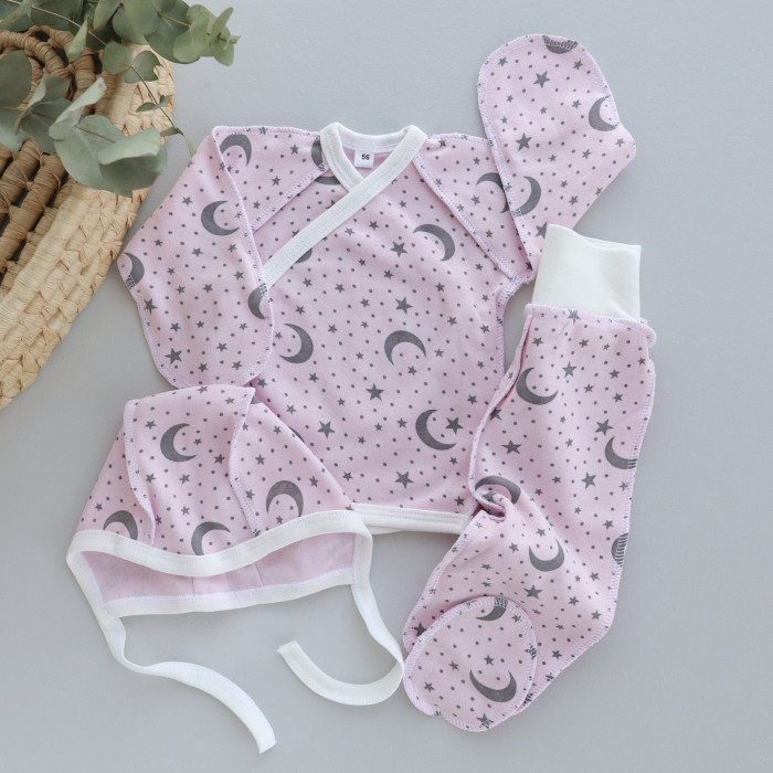 Набір 3в1: Льоля, повзунки та шапочка Місяць Рожевий (Інтерлок) 56 (0-3міс)