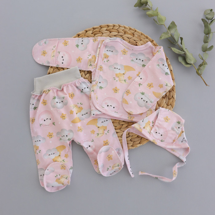 Набір 3в1: Льоля, повзунки та шапочка на зав’язках Рожевий Місяць (Футер - з начосом) 56 (0-3міс)