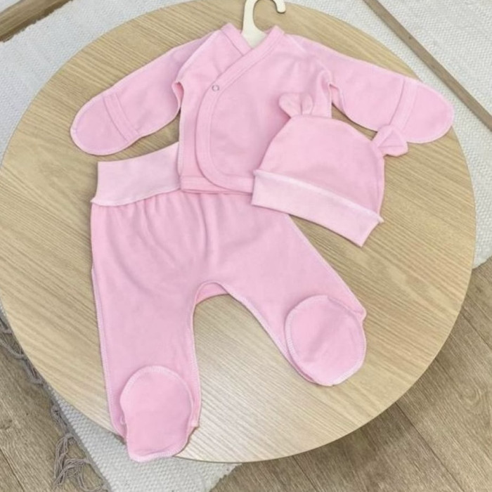 Набір 3в1: Льоля, повзунки та шапочка Рожевий (Футер- з начосом) 62 (3-6міс)