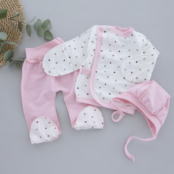 Набір 3в1: Льоля, повзунки та шапочка Сердечка Рожевий (Футер - з начосом) 56 (0-3міс)