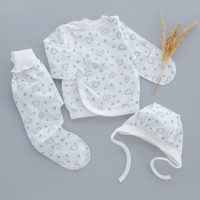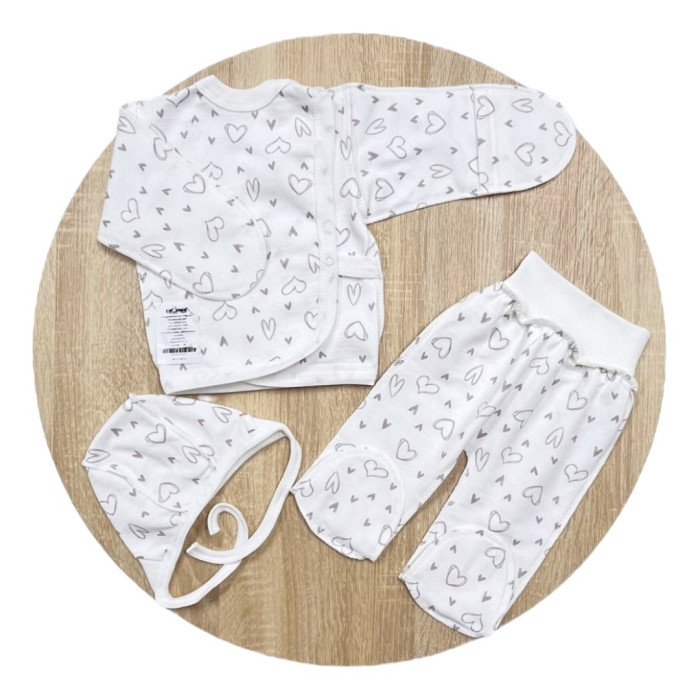 Набір 3в1: Льоля, повзунки та шапочка Сердечка Сірий (Футер- з начосом) 56 (0-3міс)