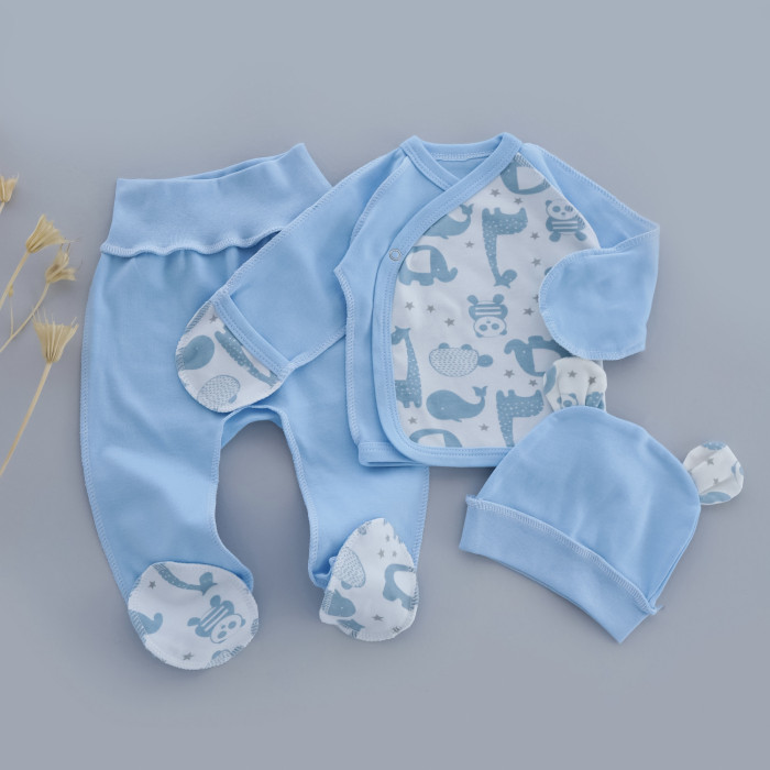 Набір 3в1: Льоля, повзунки та шапочка Слоник Блакитний (Інтерлок) 62 (3-6міс)