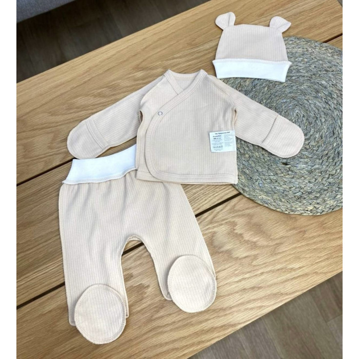 Набір 3в1: Льоля, повзунки та шапочка Світло Бежевий (Рубчик) 56 (0-3міс)