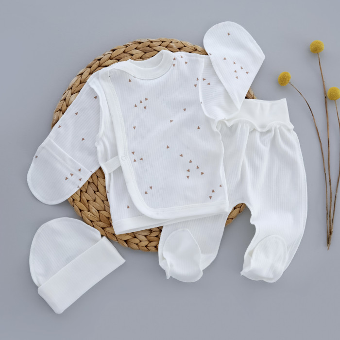 Набір 3в1: Льоля, повзунки та шапочка Трикутники Молочний (Рубчик) 56 (0-3міс)