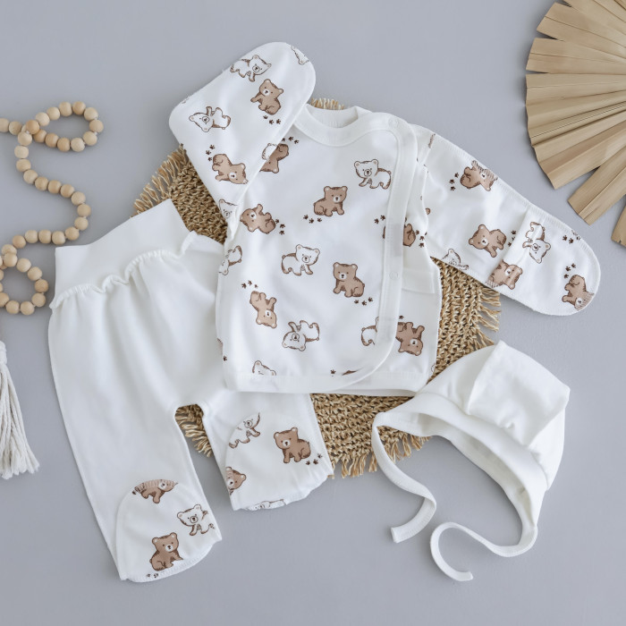 Набір 3в1: Льоля, повзунки та шапочка Ведмедики коричневий (Футер - з начосом) 56 (0-3міс)