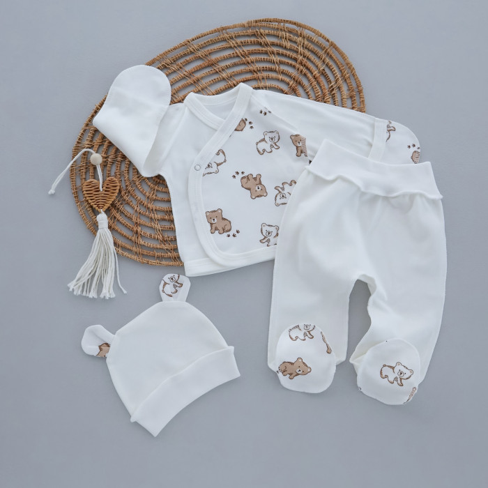 Набір 3в1: Льоля, повзунки та шапочка Ведмедики Коричневий (Інтерлок) 56 (0-3міс)