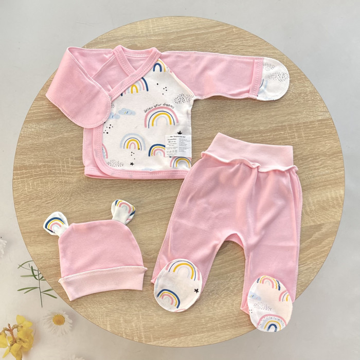Набір 3в1: Льоля, повзунки та шапочка Веселка Рожевий (Інтерлок) 56 (0-3міс)