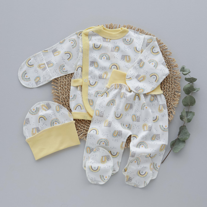 Набір 3в1: Льоля, повзунки та шапочка Веселка Жовтий (Інтерлок) 56 (0-3міс)
