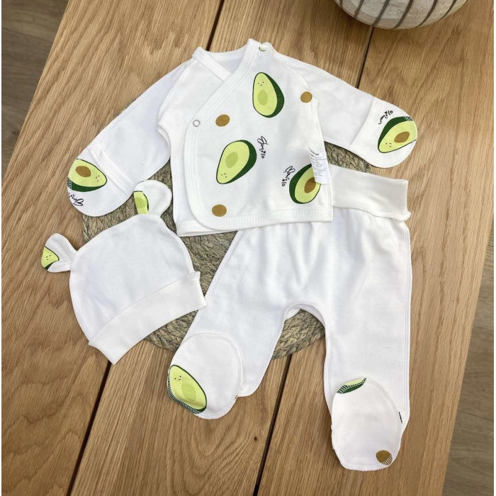Набір 3в1: Льоля, повзунки та шапочка з вушками Авокадо (Інтерлок) 56 (0-3міс)