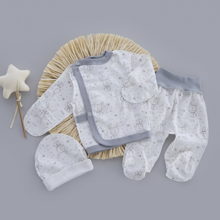 Набір 3в1: Льоля, повзунки та шапочка Зайчик Сірий (Інтерлок) 56 (0-3міс)