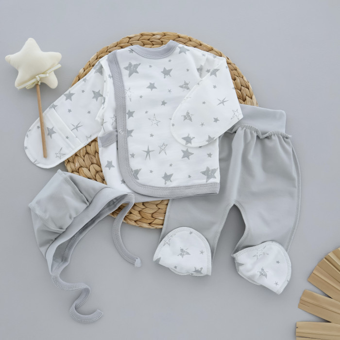 Набір 3в1: Льоля, повзунки та шапочка Зірки Сірий (Футер - з начосом) 56 (0-3міс)