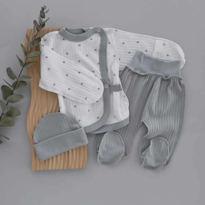 Набір 3в1: Льоля, повзунки та шапочка Зірки Сірий (Рубчик) 56 (0-3міс)