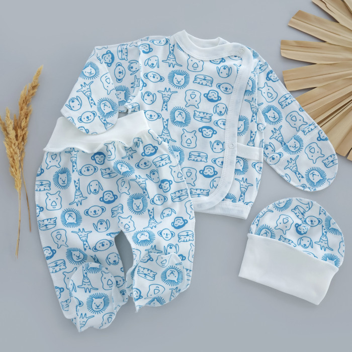 Набір 3в1: Льоля, повзунки та шапочка Звірята Блакитний (Інтерлок) 56 (0-3міс)