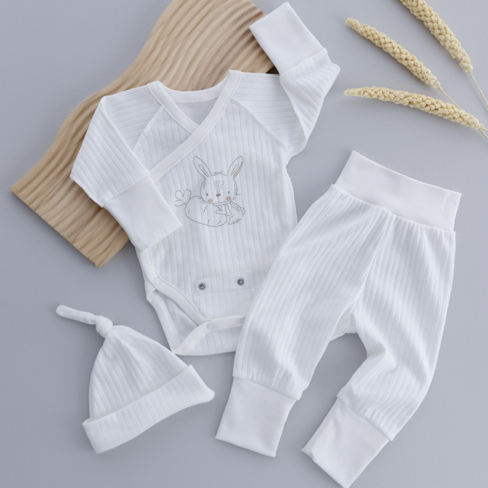 Набір 3в1 зростаючий: Боді, штанці та шапочка Зайка Молочний (Рубчик) 62-68