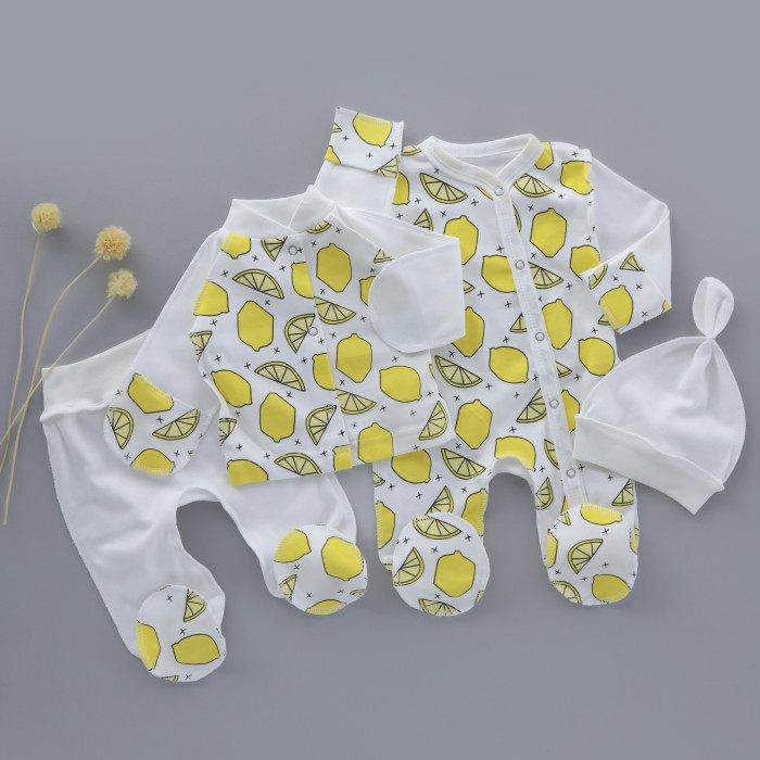 Набір 4в1: Чоловічок, ковтинка, повзунки, шапочка Лимони (Інтерлок) 56 (0-1міс)