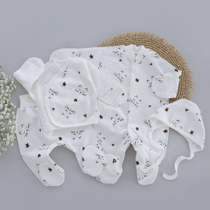 Набір 4в1: Чоловічок, льоля, повзунки та шапочка Котики (Футер - з начосом) 56 (0-3міс)