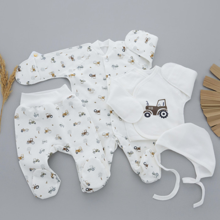 Набір 4в1: Чоловічок, льоля, повзунки та шапочка Трактор (Футер - з начосом) 56 (0-3міс)