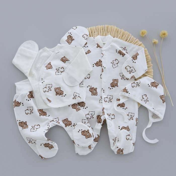 Набір 4в1: Чоловічок, льоля, повзунки та шапочка Ведмедики Коричневий (Футер - з начосом) 56 (0-3міс)