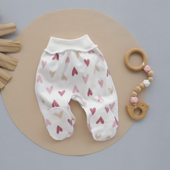 Повзунки Сердечка Рожевий (Футер - з начосом) 56 (0-1міс)