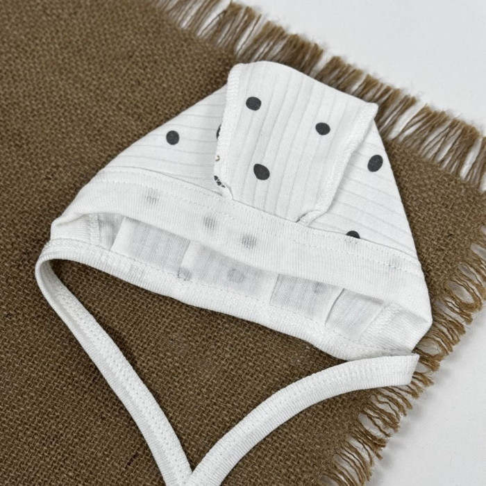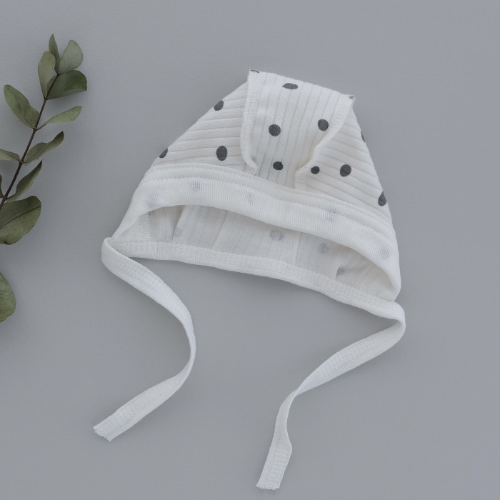 Шапочка на завʼязках Горошок Сірий (Рубчик) 56 (0-3міс)
