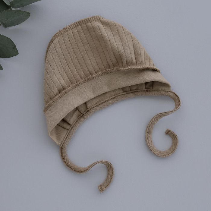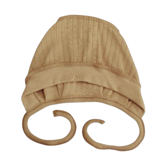 Шапочка на завʼязках Кавовий (Рубчик) 56 (0-3міс)