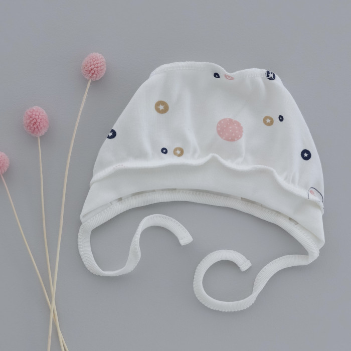 Шапочка на завʼязках Слоники (Інтерлок) 56 (0-3міс)