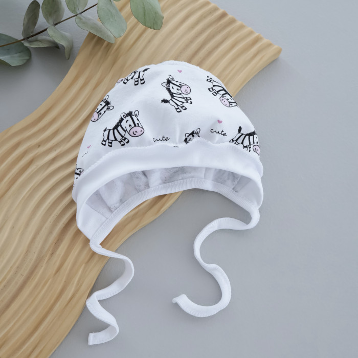 Шапочка на зав’язках Зебри (Футер - з начосом) 56 (0-3міс)