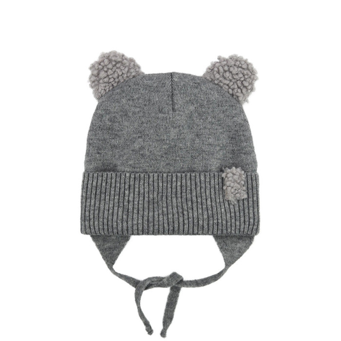Шапочка в'язана (підклад Фліс) з вушками Тедді Сірий меланж (хол осінь/ тепла зима) 42-44 (6-9міс)