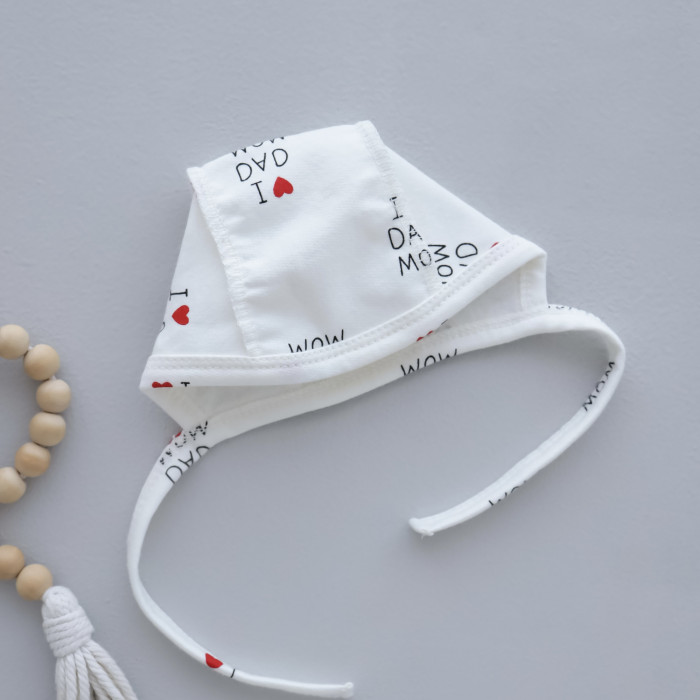 Шапочка на зав’язках Кохаю мама тато (Футер - з начосом) 56 (0-3міс)