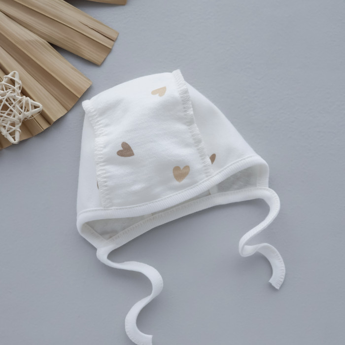 Шапочка на зав’язках Сердечка Бежевий (Футер - з начосом) 56 (0-3міс)
